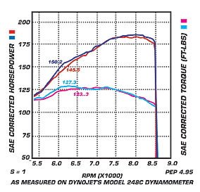 RED LINE - BEFORE TUNING BLUE LINE - SKUNK2 CAM GEARS AFTER TUNING